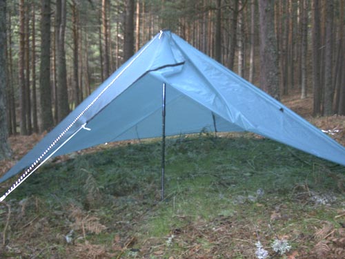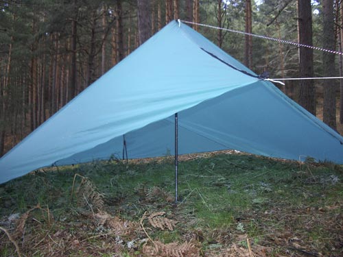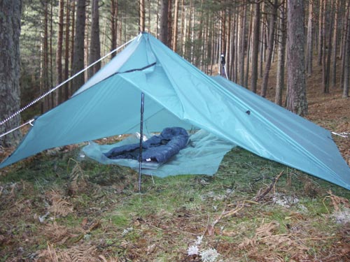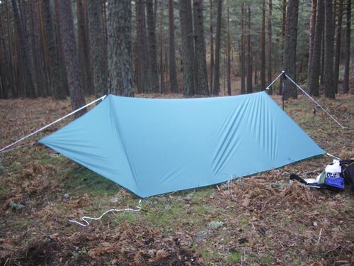 I spent a very comfortable night. It was freezing cold but calm and dry. It started raining at dawn and the tarp shed it with ease, no leaks (I had applied 15 gr., almost 1/2 oz!!! in sealant alone so I expected no leaks!). I had no condensation at all. Above all, I felt safe and comfortable, if only a bit on the cold side but that's not the tarp's fault.