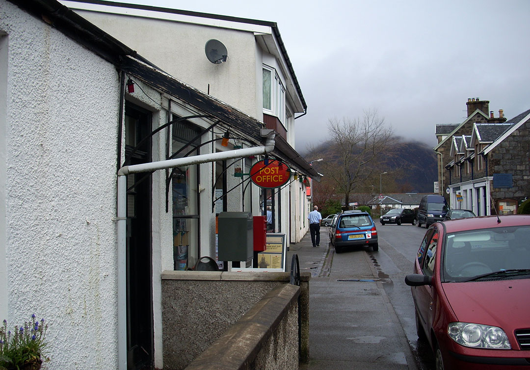Taynuilt es un pequeño pueblecito cercano a Oban y a orillas de Loch Etive. Sigue lloviendo y el tejadillo de la oficina postal me servirá para terminar de organizar mis cosas. Para cuando salgo, el tiempo escocés da fe de su variabilidad: ha dejado de llover.