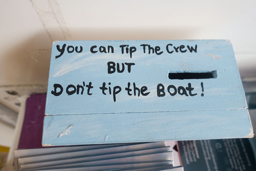 Buen humor en el ferry de Bonne Bay