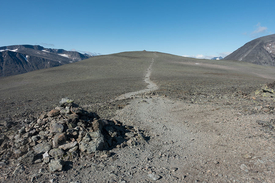 Se me ocurren dos factores principales para este cambio de escenario: uno, que el terreno ha sido consistentemente elevado y rocoso pero es que no me he encontrado ni con la típica mini-drepresión a medio drenar e imposible de rodear tan común en viajes previos. Incluso las mesetas de Hardangervidda, mayormente llanas y con poca roca, tenían suelo firme y las pocas zonas fangosas que crucé estaban equipadas con tablones de madera, lo que me lleva al segundo factor, el mencionado más arriba de la relativa popularidad de la zona. No es que sea una serie de autopistas senderistas, los caminos siguen siendo austeros, pero sí que hay infraestructuras como puentes sobre prácticamente todos los ríos y los mencionados tablones en los fangales.