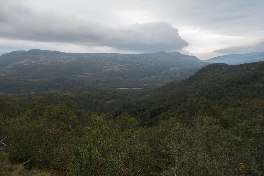 Pasado Hardangervidda, entré en lo que sentí como una etapa completamente diferente en el contexto del viaje, por una zona menos visitada en la que bajé a valles, toqué bosque y, ocasionalmente, incluso granjas. Ascender a las mesetas de Ryfylke fue como emerger en un nuevo mundo con un carácter propio y que parecía a una galaxia de distancia de lo que había dejado atrás.