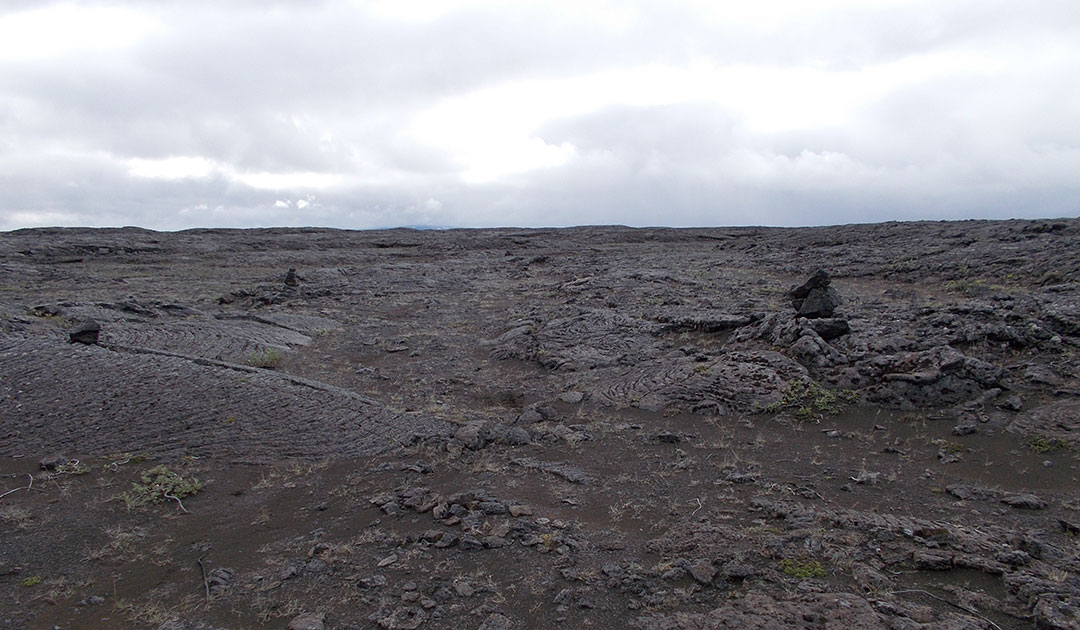 It’s also odd that there seems to be no “logical” way to the track … when following a trail or a cairned route in non-volcanic ground, there’s usually a sense of direction that takes you there before you see the next marker or the next section of trail tread. Not so in the lava fields. At most, the only apparent “rule” is that the track tries to link the sandy patches, when available. If not, a straight line would be expected but that’s not always, not exactly the case. Overall it wasn’t difficult to follow the markers anyway.