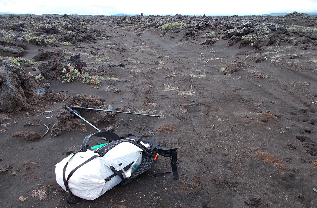 Out the Botni door there’s more lava field hiking. It’s kind of mesmerizing to be going through such an special environment: flat, featureless (had I said that before?) and so oddly shaped underfoot. One could set a bearing in a straight line and just keep going. I choose the easier way which means following the wooden markers. They’re spaced out enough to require close attention but that’s all it takes.
