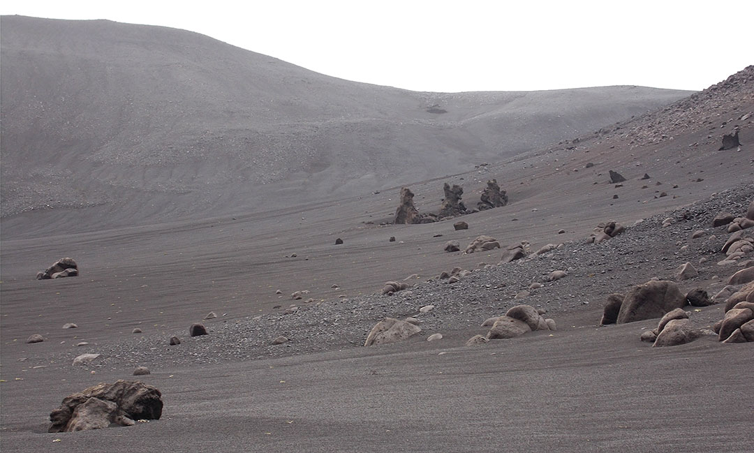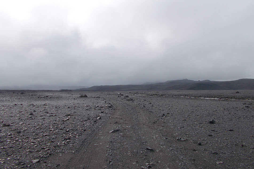 I get off the lava field and onto gravel. Here the track is clearly marked on the ground again. There are isolated volcanic cones like islands in a sea of dust and rock. I’m starting to really enjoy this.