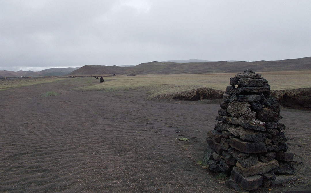 The ring road has some traffic but nothing dramatic. Most of the time I can walk off to the side of the road, well away from the traffic and there are even sections with some sort of parallel dirt road that I can have all to myself. There are even sections where huge rock cairns mark some alternative way to today’s road.