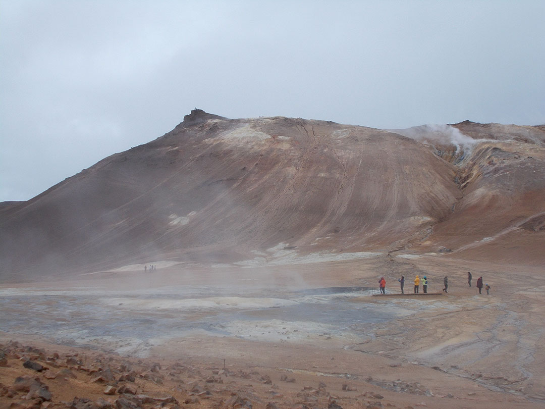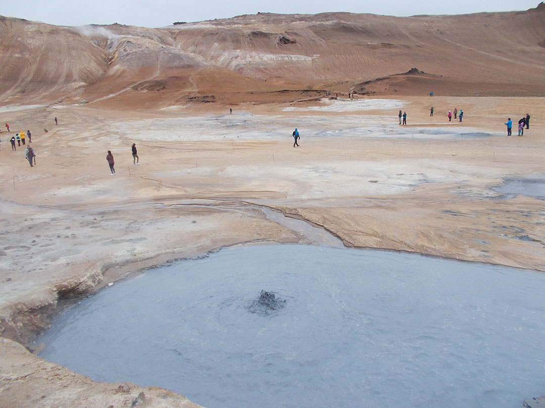 Eventually I get there: it’s the Hverir thermal area and it’s buzzing with visitors. I need a conscious decision to set the auto-walking off, take a break and have a look around. It’s once again a bit of a shock to be among so many people but I’m a world away from yesterday’s angst. As soon as I realize where I am, I truly enjoy the fumaroles, the boiling mud holes and the distinct smell of sulfur.