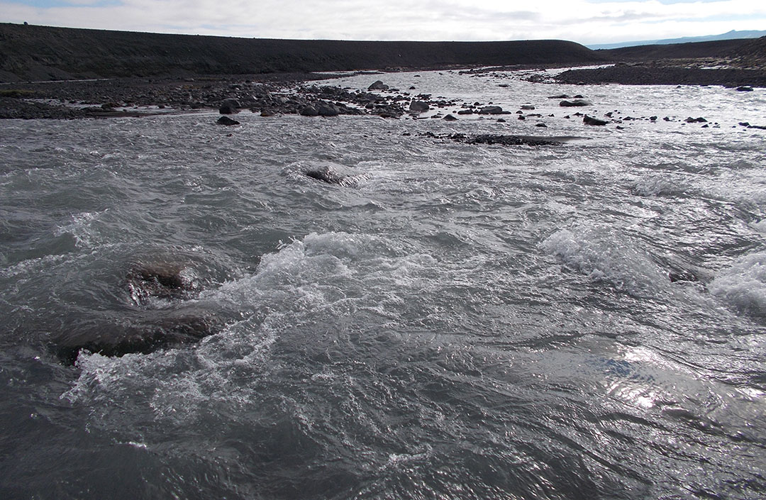 I leave the route that crosses the hills towards Nyidalur, get into a narrow valley and eventually climb towards a saddle from where I’ll exit the Vonarskard and which means a major milestone: it’s the N-S divide. When I get to the saddle and look ahead, I see the most common, braided river and it flows south to the Atlantic. It should be all downhill from here!