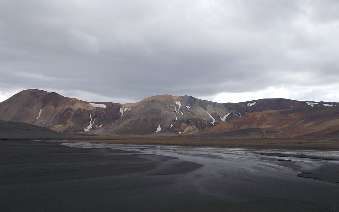 I get to the track and the trailhead. Left it’d be doom with the Svedja and Sylgja river fords. I could try my chances given that it’s been not too rainy, not too warm on the last days which is probably good for lowest flow but I’m aware that giving up at any of the fords and needing to come back would mean I wouldn’t have time to complete the traverse so I’d probably feel under pressure to try the crossings. I don’t like the prospect. I turn right.