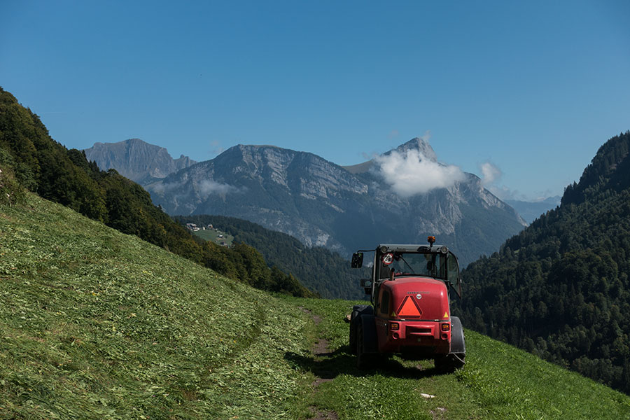 Meadows and chalets in the slopes, so very Swiss
