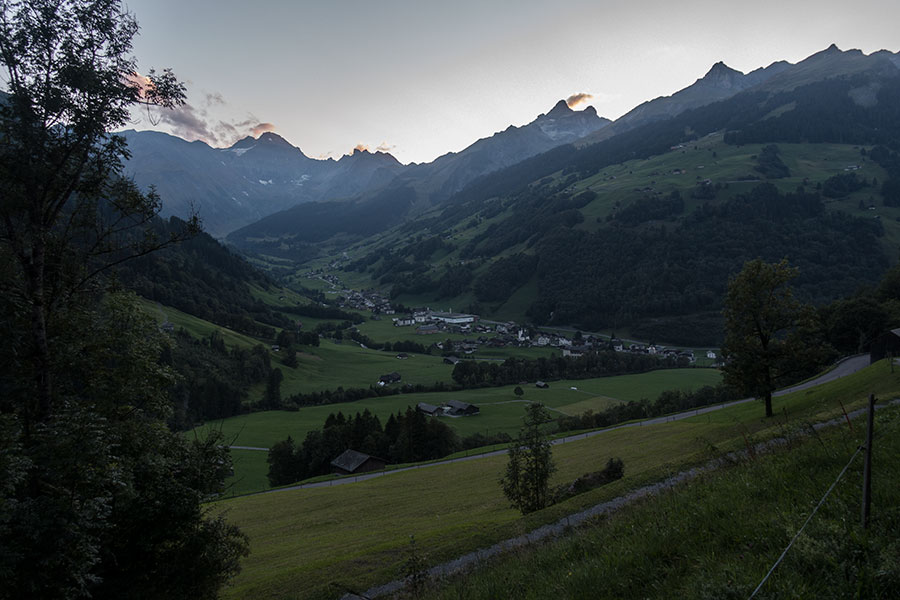 This is what you see from the top of Foopass if you look west in the setting sun. The Sernftal is the main valley. Richetlipass is the low point in center pic at the far end